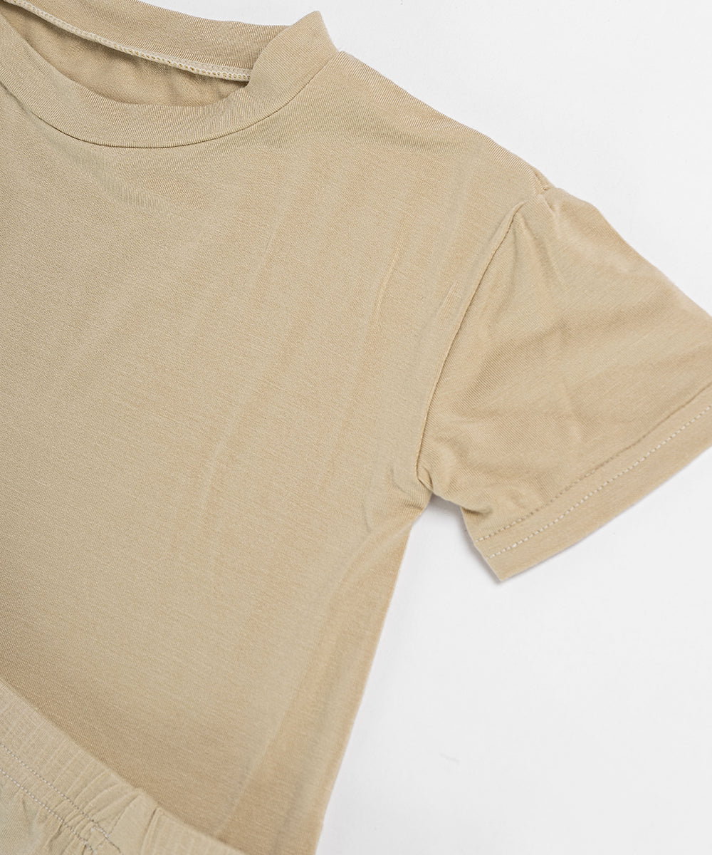 Presentamos el Conjunto Liso, compuesto por una remera y un short confeccionados con una mezcla de 95% bambú y 5% spandex. Este conjunto es perfecto para mantener a tu bebé cómodo durante todo el día, combinando suavidad, flexibilidad y un diseño minimalista.